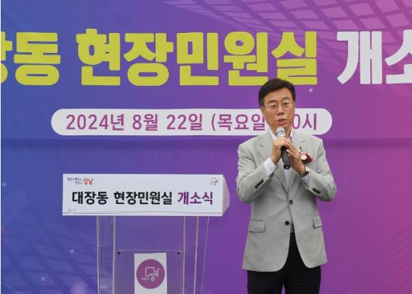 신 시장은 “대장동 주민분들에게 더 가까이서 빠른 행정서비스를 제공하고, 불편을 해소하고자 대장동 현장민원실을 만들게 됐다”라며 “주민 여러분이 주민등록 제증명 발급 등 필요한 서비스를 편리하게 받으실 수 있도록 알차게 운영하고, 앞으로 여러분을 더 많이 찾아뵐 수 있도록 노력하겠다”라고 말했다.