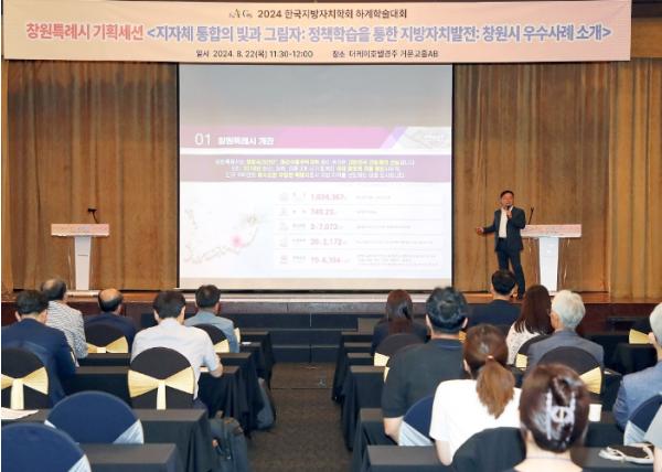 창원특례시는 22일 경주에서 열린 2024년 한국지방자치학회 하계 학술대회에 홍남표 시장이 기조 강연자로 특별 초청을 받아 ‘정책학습을 통한 지방자치 발전’을 주제로 발표에 나섰다고 밝혔다.