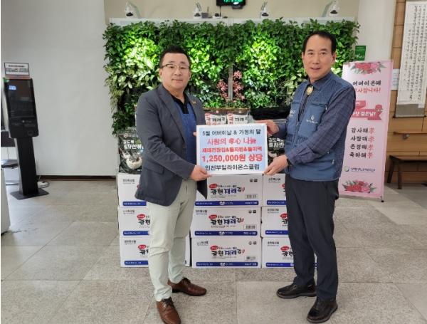 부평구노인복지관은 인천부일라이온스클럽에서 매월 80만원 상당 (주)김앤김 제품을 2023년 10월부터 3년(3,000여만원 상당)동안 지속적으로 지원한다는 계획에 따라 현재까지 농수산물품을 후원받고 밝혔다.