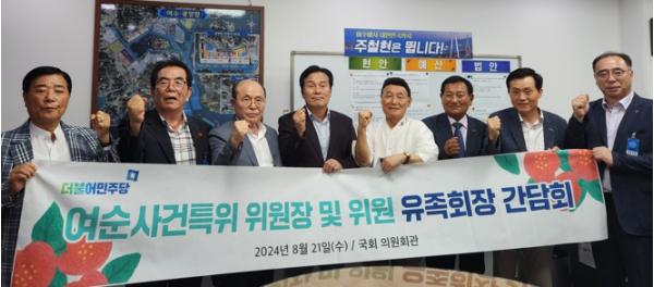 이에 주철현 위원장과 조계원, 김문수, 권향엽 위원은 “여순사건의 명백한 진상규명과 온전한 명예회복이 차질없이 이뤄지도록 유족들과 늘 소통하고 특위 차원에서도 특별법 개정에 총력을 기울이겠다”고 말했다.