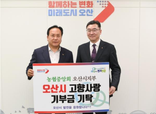 오산시는 5일 유승민 농협중앙회 오산지부장이 오산시에 고향사랑 기부금을 기탁했다고 밝혔다.