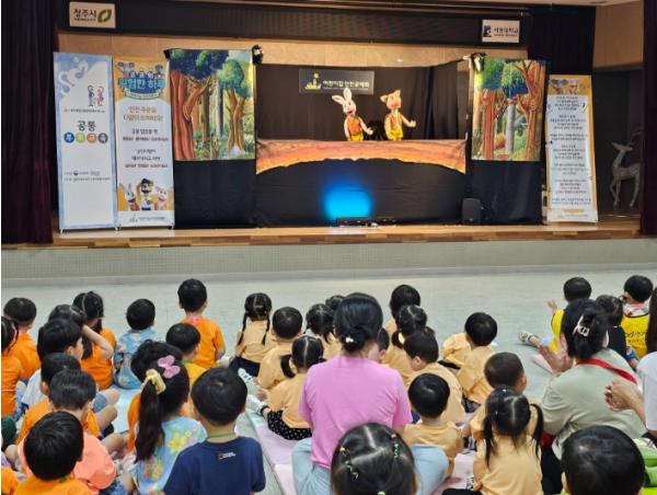 이번 공연은 어린이집안전공제회 주관, 청주시육아종합지원센터 주최로 공모사업을 통해 진행됐으며, 총 9회에 걸쳐 관내 50여개소 어린이집에서 영유아 940여명이 관람했다.