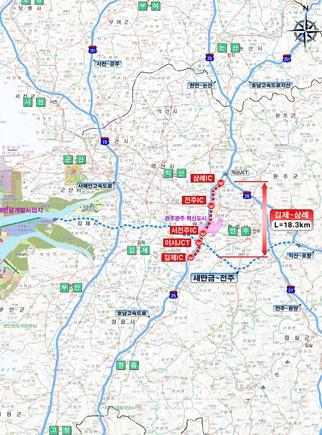 호남고속도로 김제~삼례 구간 확장사업은 2017년 1월 ?제1차 고속도로 건설계획(2016~2020년)』에 중점사업으로 반영됐으며, 김제시 금구면 김제IC에서 익산시 왕궁면 삼례IC까지 18.3㎞ 구간을 기존 4차로에서 6차로로 확장하여 2028년 개통을 목표로 하는 사업이다.