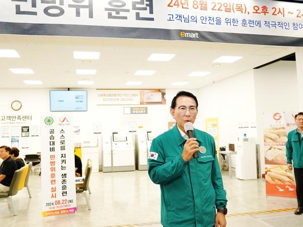 오후 2시 훈련 공습경보 발령으로 시작된 훈련에서 이마트 직원들과 고객들의 적극적인 참여로 신속한 대피가 이뤄졌다.