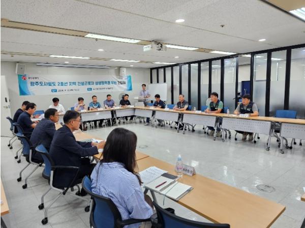 광주광역시도시철도건설본부는 22일 도시철도건설본부 대회의장에서 ‘도시철도 2호선 2단계’ 건설공사 착공에 앞서 지역 건설노조와 간담회를 개최했다.