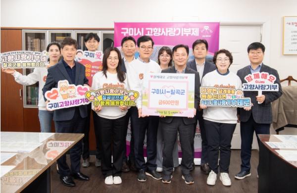 이번 기부에는 구미시 미래도시기획실 직원과 왜관 순심고등학교 구미시청 동문회, 칠곡군 행정복지국 직원 60명이 고향 사랑 실천을 위해 동참했다.