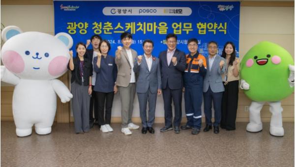 광양시는 23일 시청 접견실에서 정인화 광양시장, 양병호 ㈜포스코 지원경영본부장, 백승훈 ㈜네모 대표이사 등이 참여한 가운데 ‘청년 활동 활성화를 위한 광양 청춘스케치마을 업무 협약식’이 개최됐다고 알렸다.