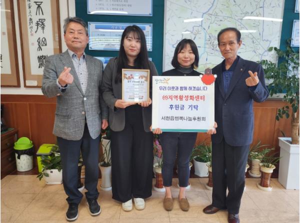 서천군 서천읍행복나눔후원회는 지난 5일 후원금을 기탁한 ㈜지역활성화센터(대표 오형은)를 좋은이웃사촌 163호로 선정했다.