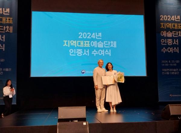 문화체육관광부가 주관하는 2024년 지역대표 예술단체 인증서 수여식에서 강릉시 한소리전통예술단(대표 김화옥)이 ‘지역대표예술단체 인증서’를 받았다.