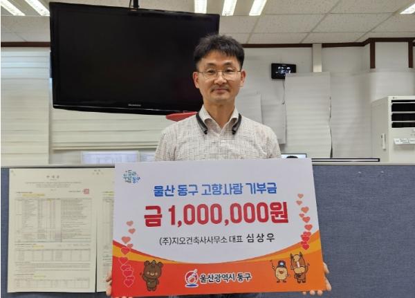 ㈜지오건축사사무소 심상우 대표는 8월 23일 울산 동구에 고향사랑 기부금 100만원을 전달했다.