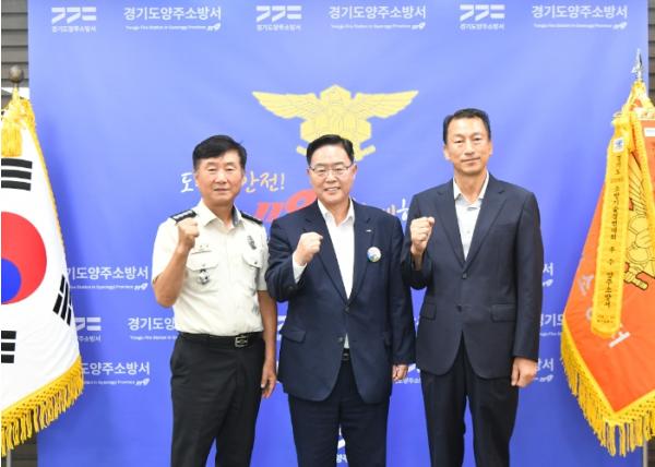강수현 양주시장이 26일 오전 추석 연휴를 앞두고 양주소방서를 방문해 직원을 격려했다.