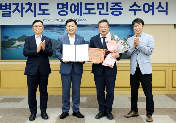 전북특별자치도는 26일 도청 회의실에서 김관영 도지사가 김진상 전 KIST 전북분원장에게 명예도민증을 수여했다고 밝혔다.