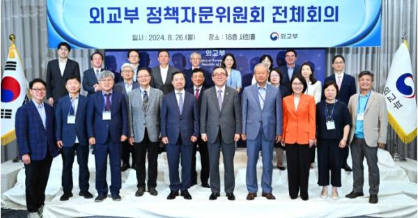 외교부는 조태열 장관 주재로 외교부 정책자문위원회 2024년 정책자문위원회 전체회의를 8월 26일 외교부 청사 18층 서희홀에서 개최했다. 장·차관을 비롯한 외교부 간부와 정책자문위원 100여명이 참석했다.