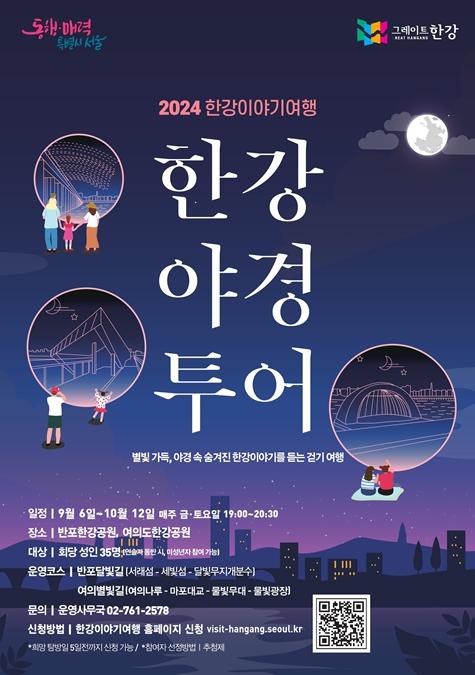 9~10월 운영되는 '한강야경투어' 참가비는 무료이며, 8월 30일부터 한강이야기여행 누리집을 통해 참여 희망일 5일 전까지 신청하면 된다.