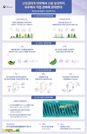 국립산림과학원은 농림위성 정보를 체계적으로 활용하기 위한 전담기관으로 산림위성센터를 신설했다. 산림위성센터는 2025년 발사 예정인 농림위성 정보와 산림환경 빅데이터를 첨단 인공지능(AI) 기술로 융복합해 정밀 디지털 산림관리 체계를 견인하는 것을 목표로 한다.