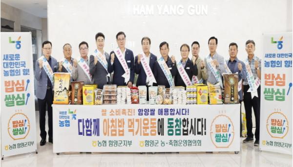 농협 함양군지부와 관내 농축협, 함양군은 29일 오전 함양군청에서 함양 쌀 소비촉진을 위한 ‘가족과 함께 아침밥 먹기 캠페인’을 전개했다.