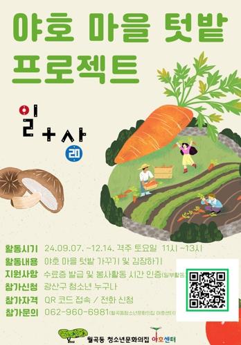 광주 광산구는 월곡동 청소년문화의집 야호센터가 청소년들이 직접 가꾸고 수확할 수 있는 예술텃밭프로젝트 ‘일+삶’을 운영한다고 밝혔다.